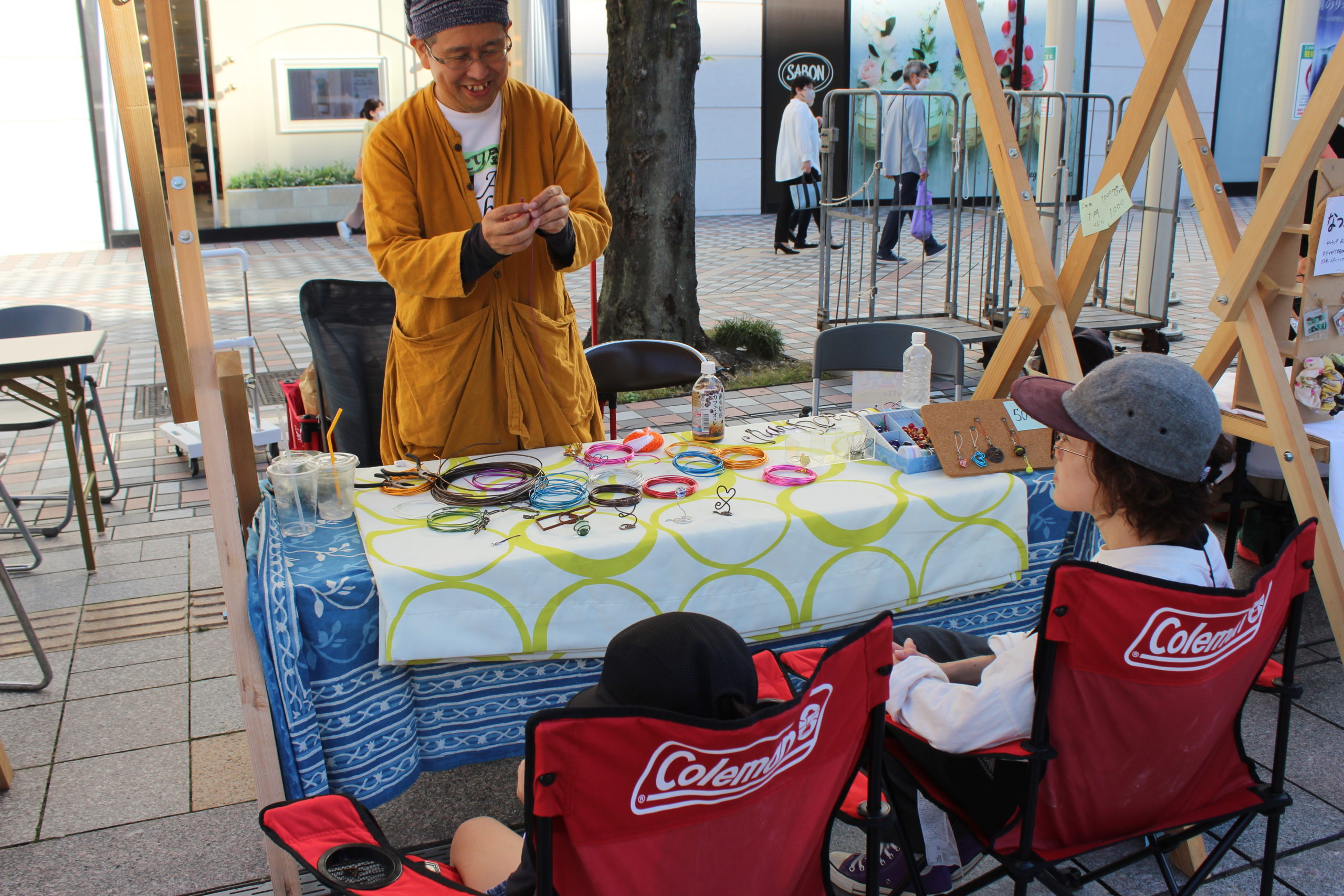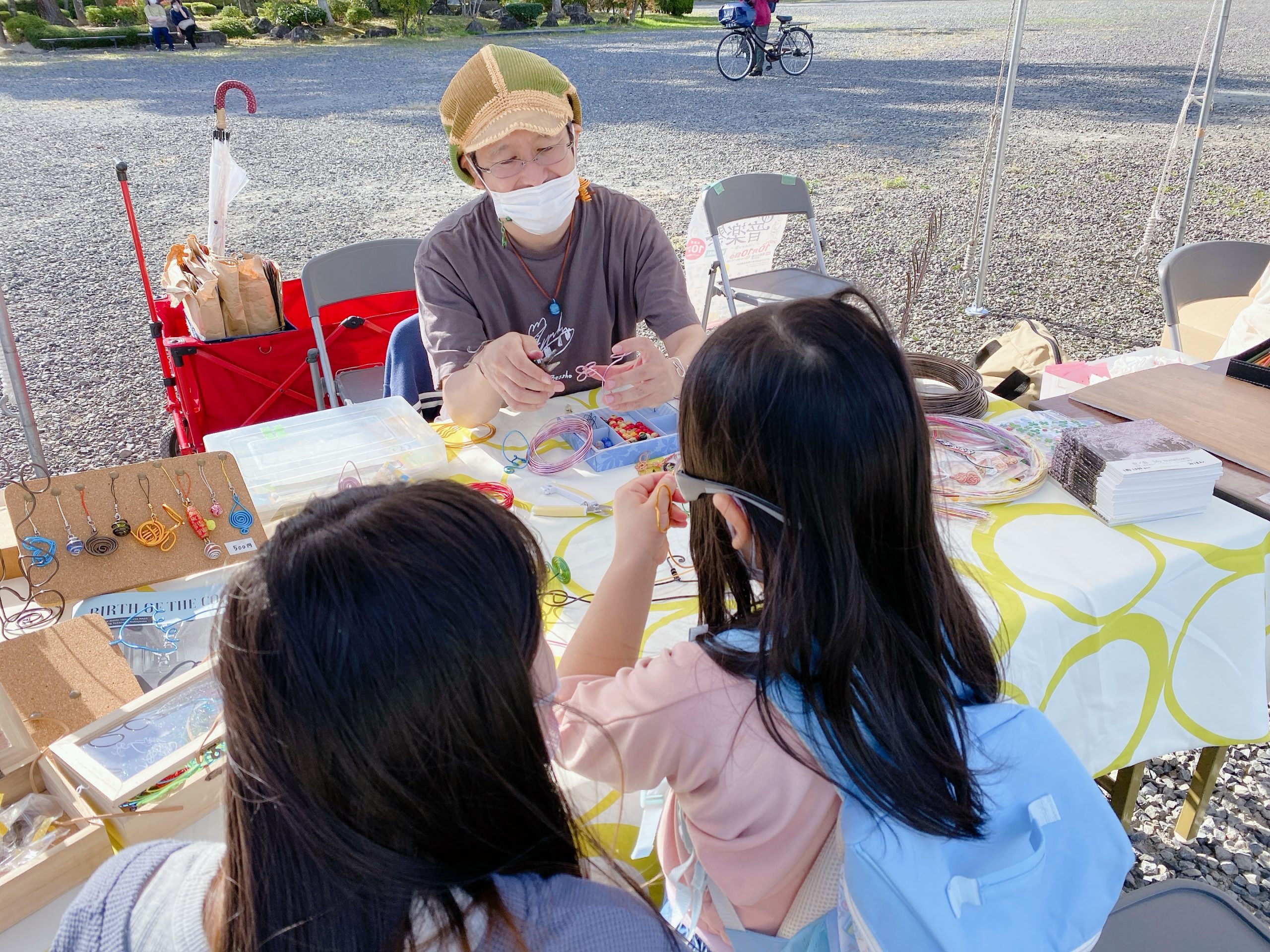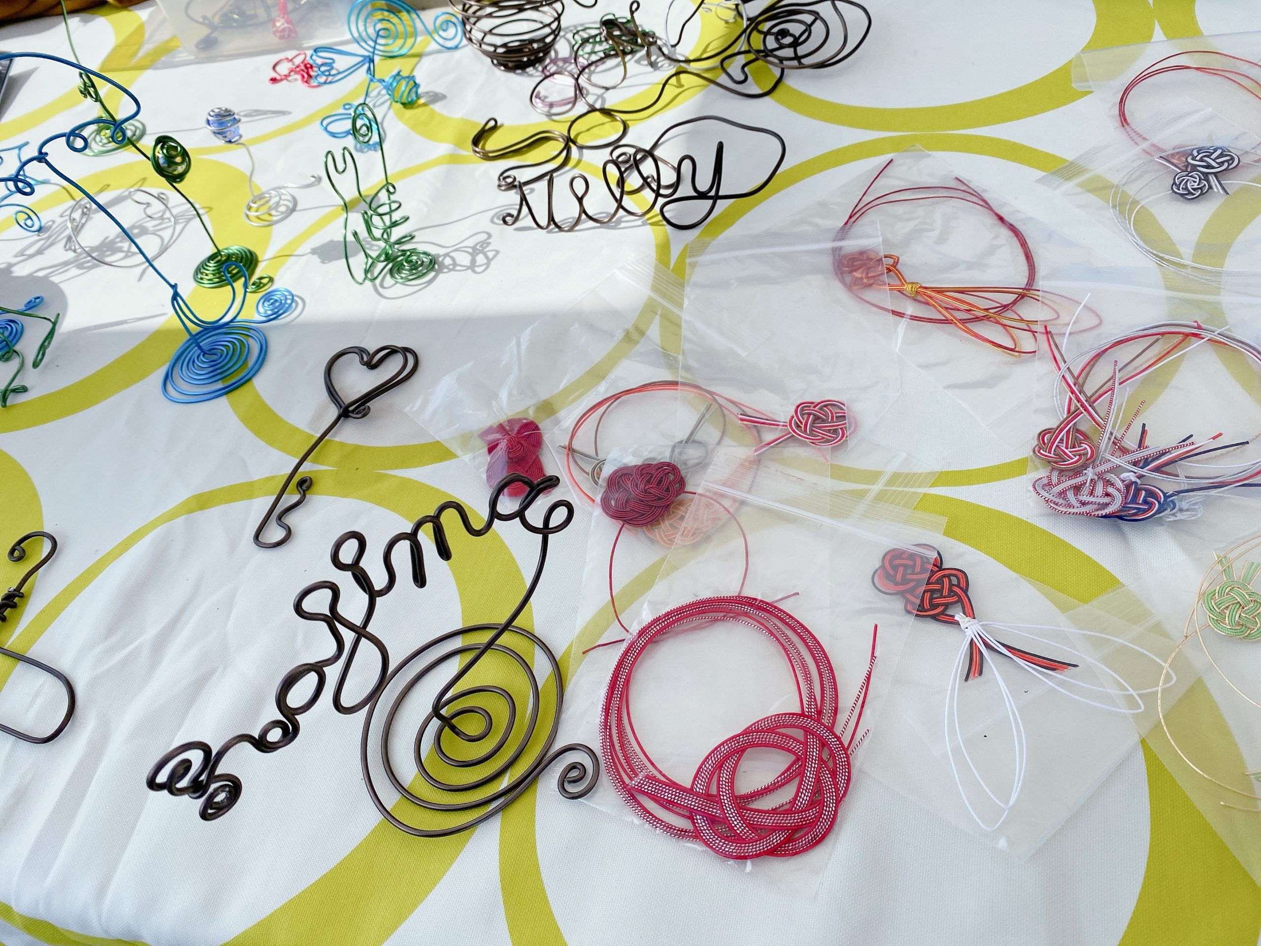「にり屋」では、電気工事士としての経験から生まれたハリガネアートを楽しめます。二リーと一緒に、アルファベットバングルやフォトスタンドなど様々なアイテムを作ってみませんか?小さなお子様も参加OK!イヤリングやバングルなどのアクセサリーも人気です。一点物のオリジナル作品を手作り体験しましょう!