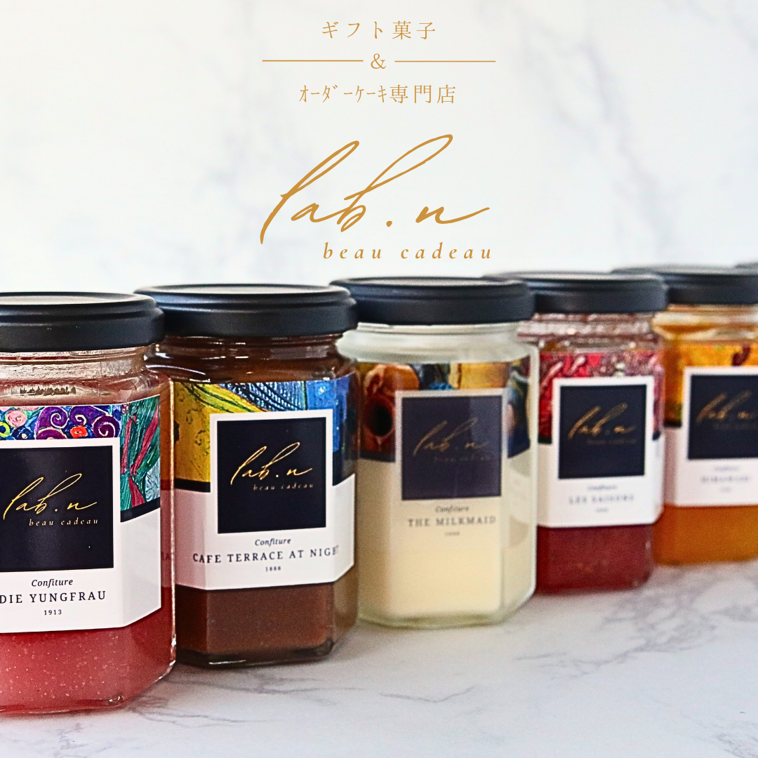 完全予約制、ギフト菓子&オーダーケーキ専門店lab.n(ルラボン)でございます。見惚れる美しさを目で味わうスイーツや、絵画からインスピレーションを受けたコンフィチュールをお持ちいたします!