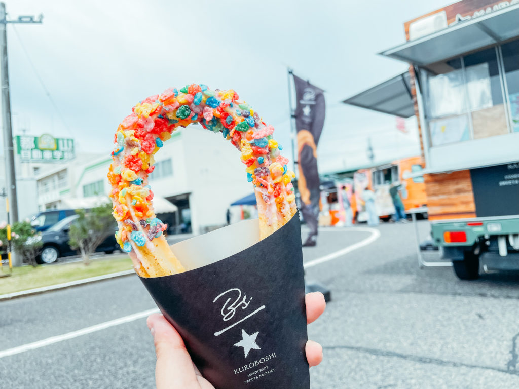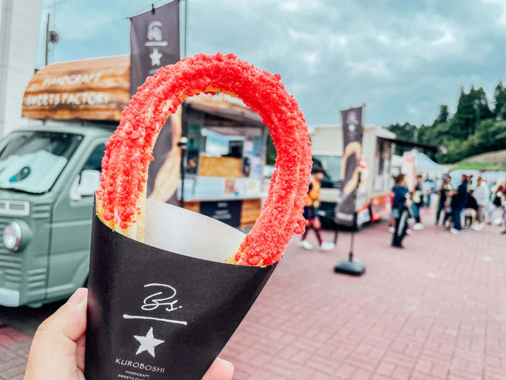 米粉を使ったグルテンフリーな揚げてチュロスを提供しております。そのほか子供に人気なキラキラドリンクや2色のカラフルソーダやハロウィンなので注射器ドリンクもご用意しております。おしゃれな揚げたてチュロスを一度食べてみてください。