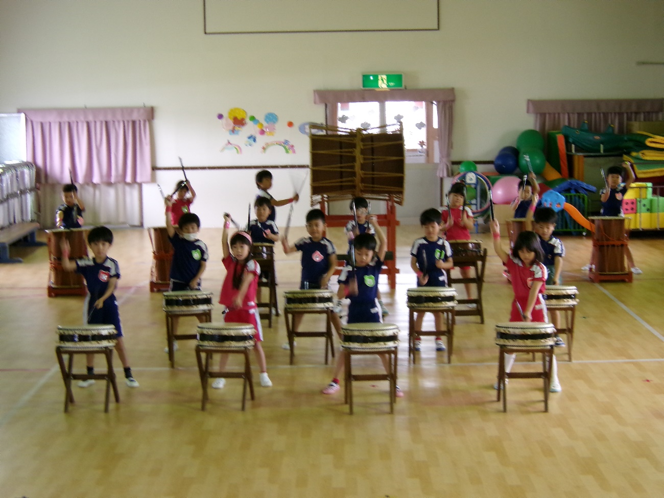 柴宮幼稚園は今年で創立43年目、現在214名の園児が毎日元気に過ごしています。楽しい園生活を送りながら、年長児は6月から日本太鼓隊とマーチング隊に分かれて練習を始めました。太鼓を通して、集中すること・最後までやり通す根気強さ・みんなと心を一つにする事の大切さを学びました。20名が心を込めて打ちます。太鼓の音が皆様の心に響きますように・・・!